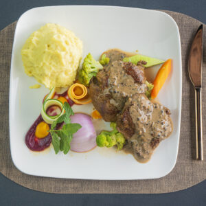 Served with mash potato, fries, vegetable, rice or salad.